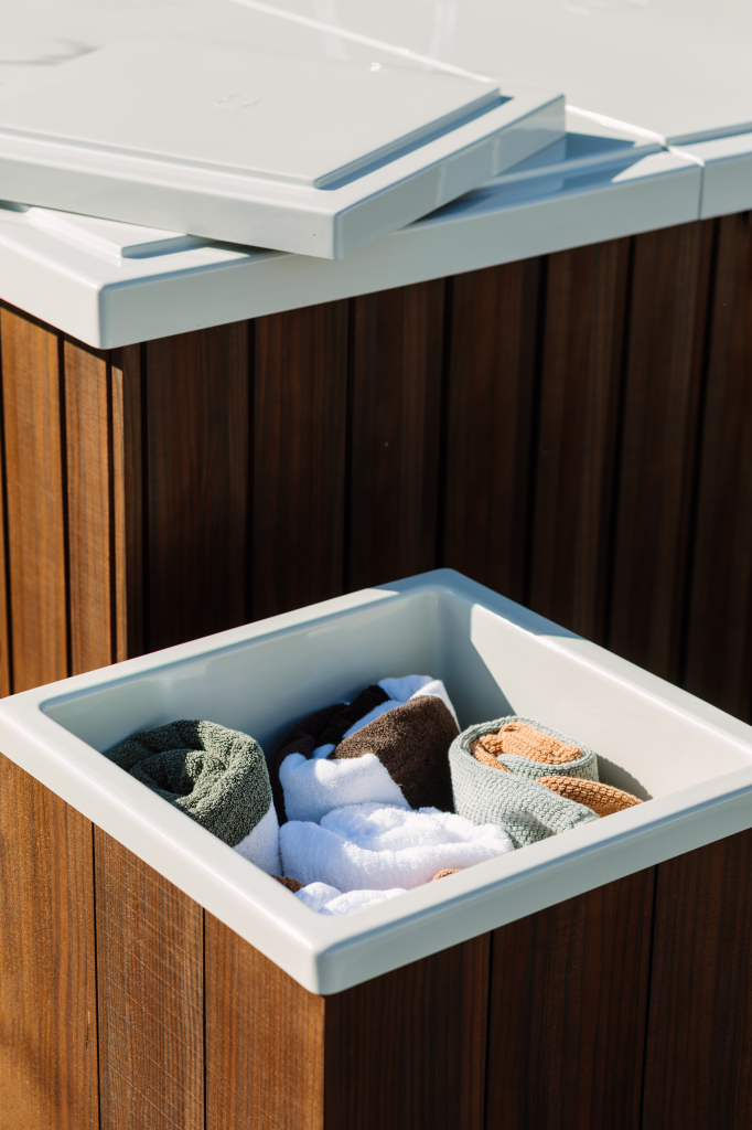 The bath sits at the centre. Each element protects it, extends its use and makes outdoor bathing easier. Designed to work together, simply and beautifully.